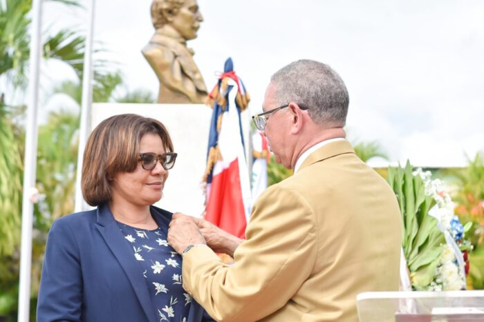 La licenciada Rafaela Javier Gomera, gobernadora provincial, resaltó el rol fundamental de los estudiantes en la preservación de los conocimientos patrios. «Como representante del presidente y compueblana, trabajamos arduamente para mantener nuestros símbolos patrios en alto», afirmó. La gobernadora compartió anécdotas de una visita de Duarte a Bayaguana durante la lucha por la independencia, recordando su legado y el de sus compañeros independentistas.